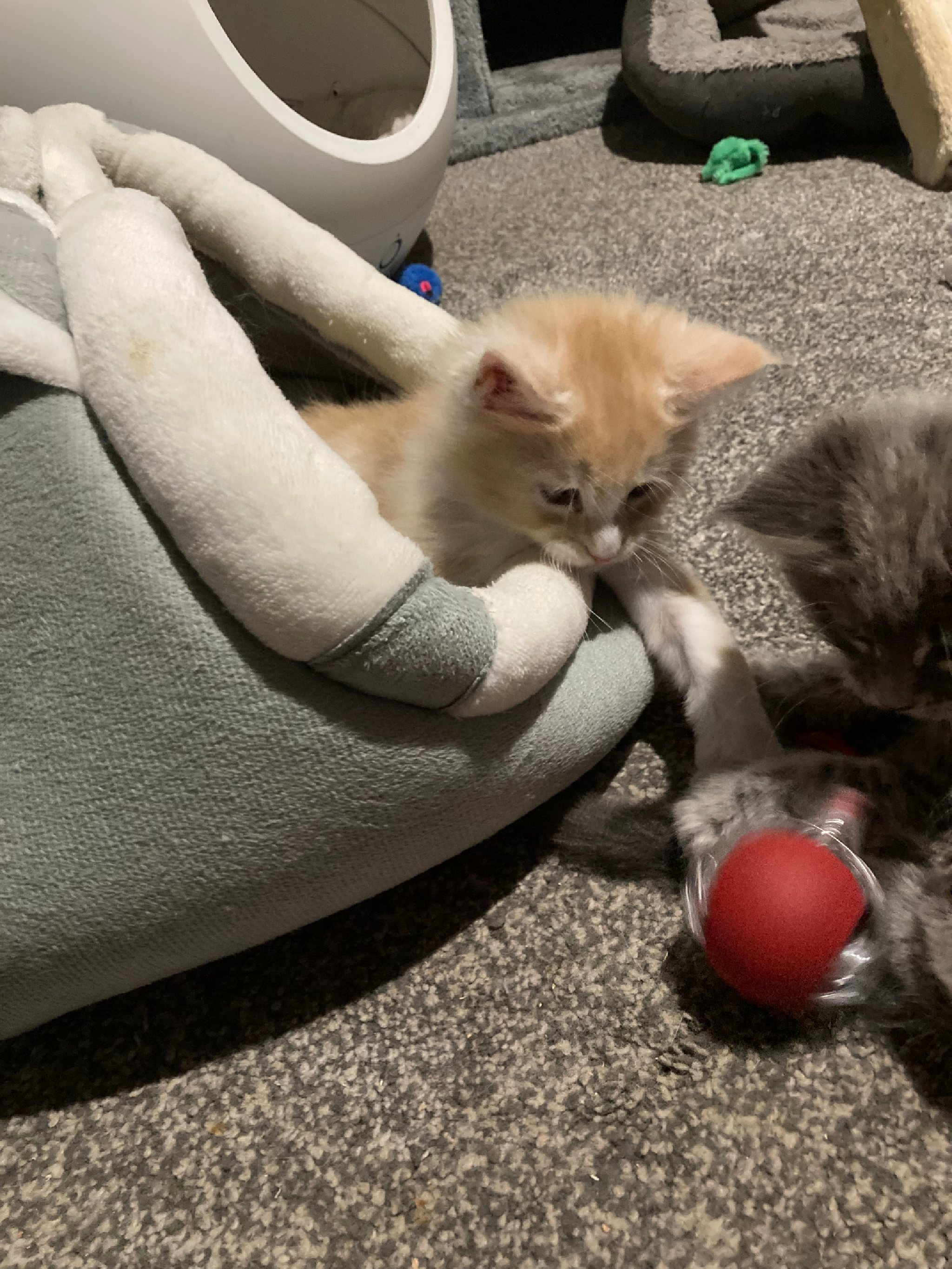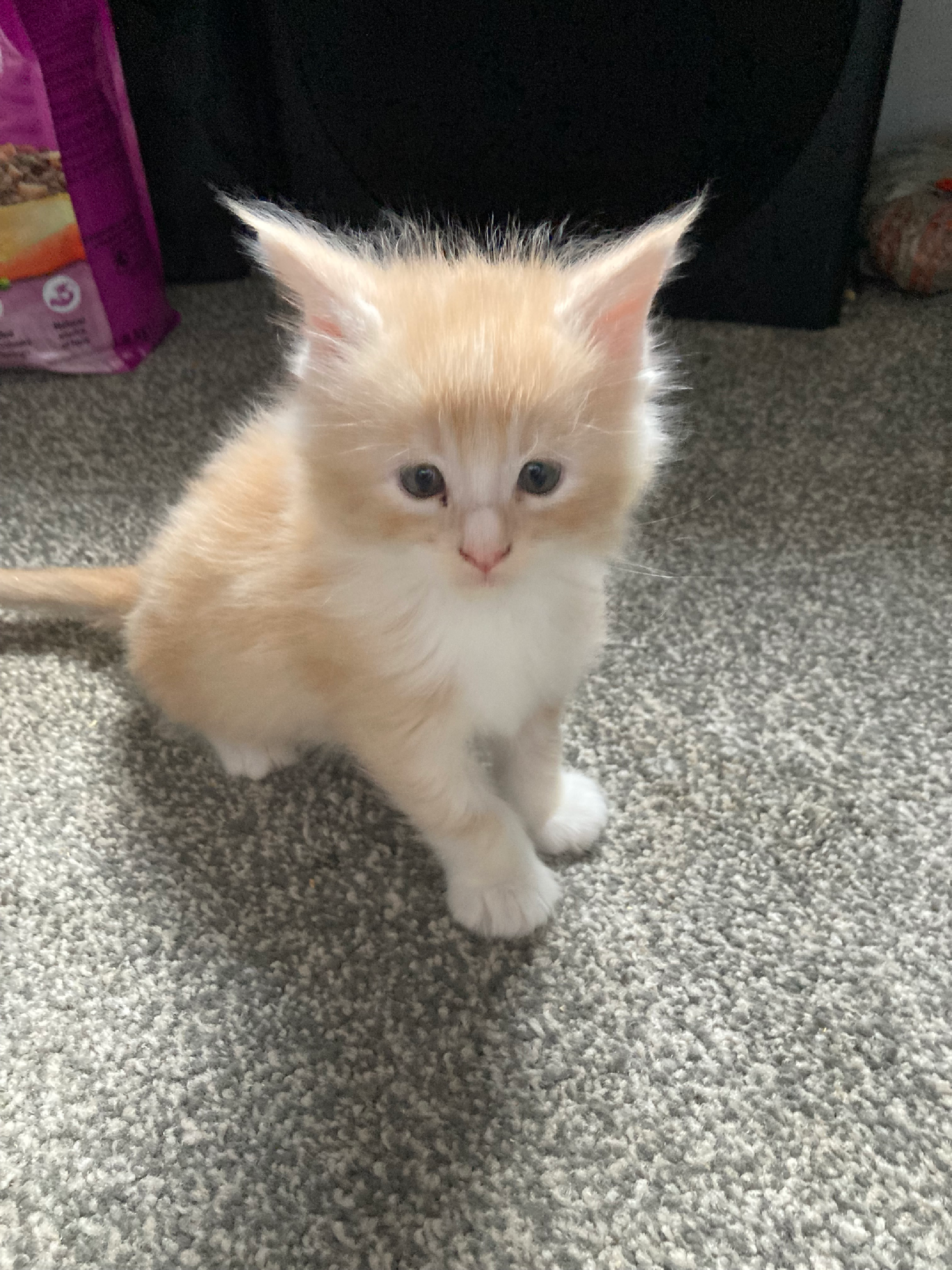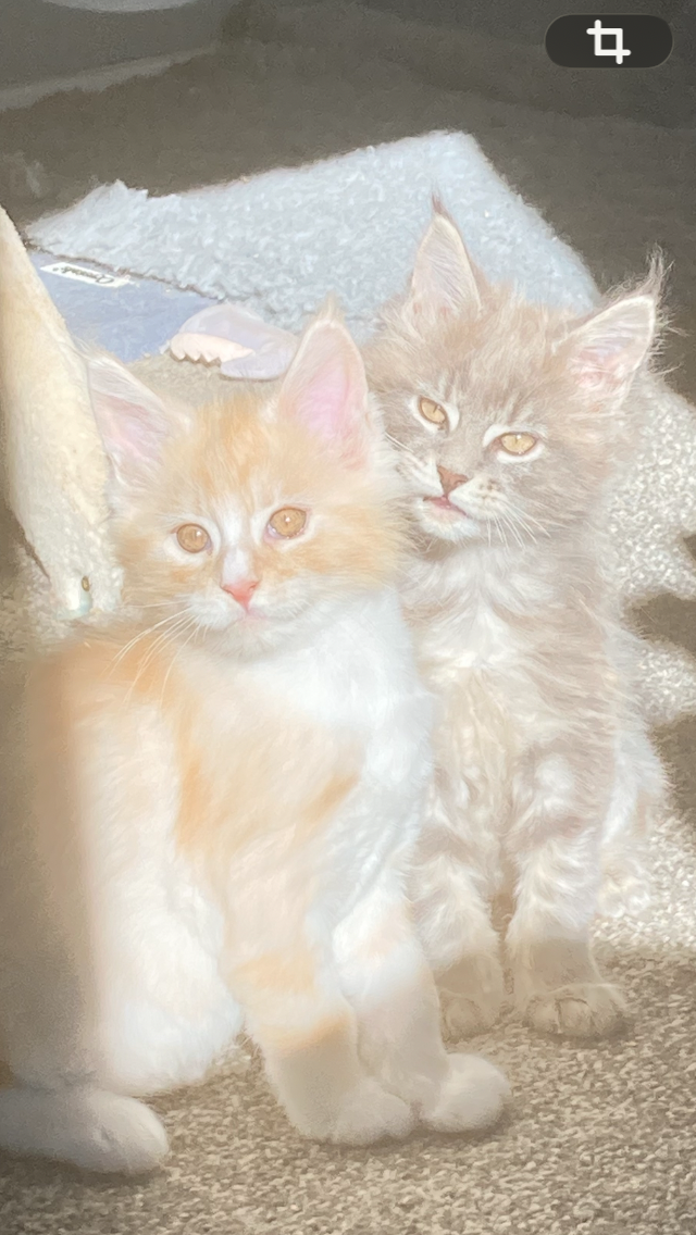 2 beautiful Maine coon kittens looking for forever home. Born 24/12/25. Male ginger/white and female blue/white tabby. I own mum and dad so both can be seen. The litter are TICA registered. Both vaccinations will be completed before they are ready to leave on April 1st. Doing everything they should independently of mum. Wormed and de-fleas up to date. Amazing beautiful babies.