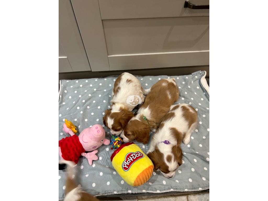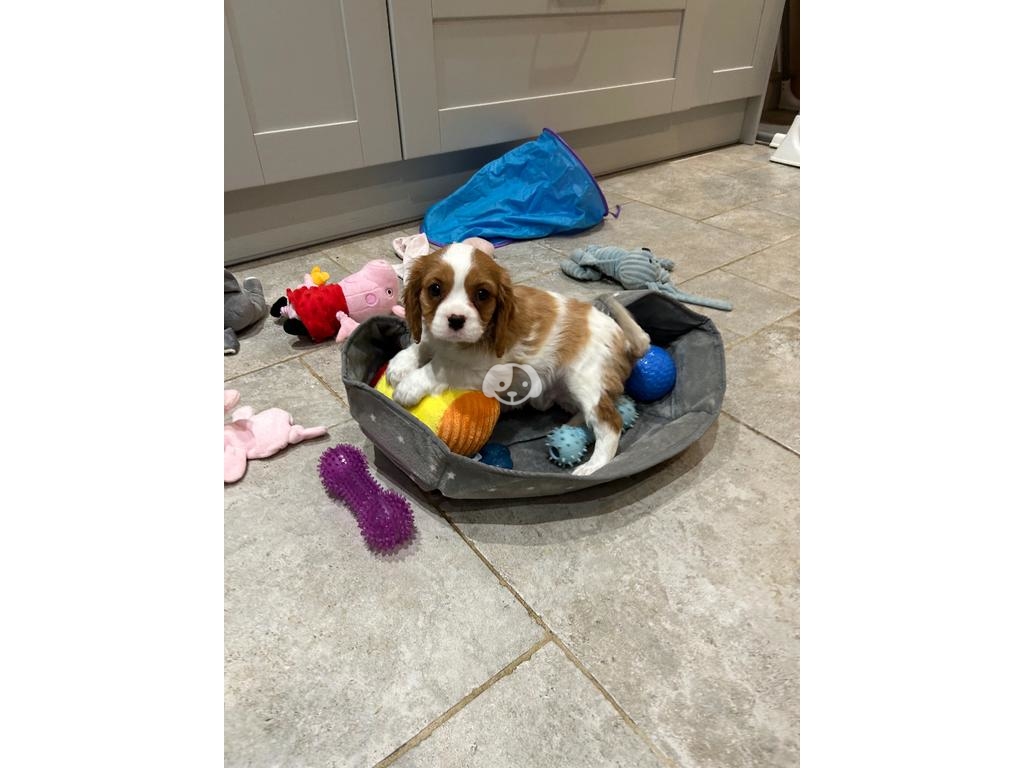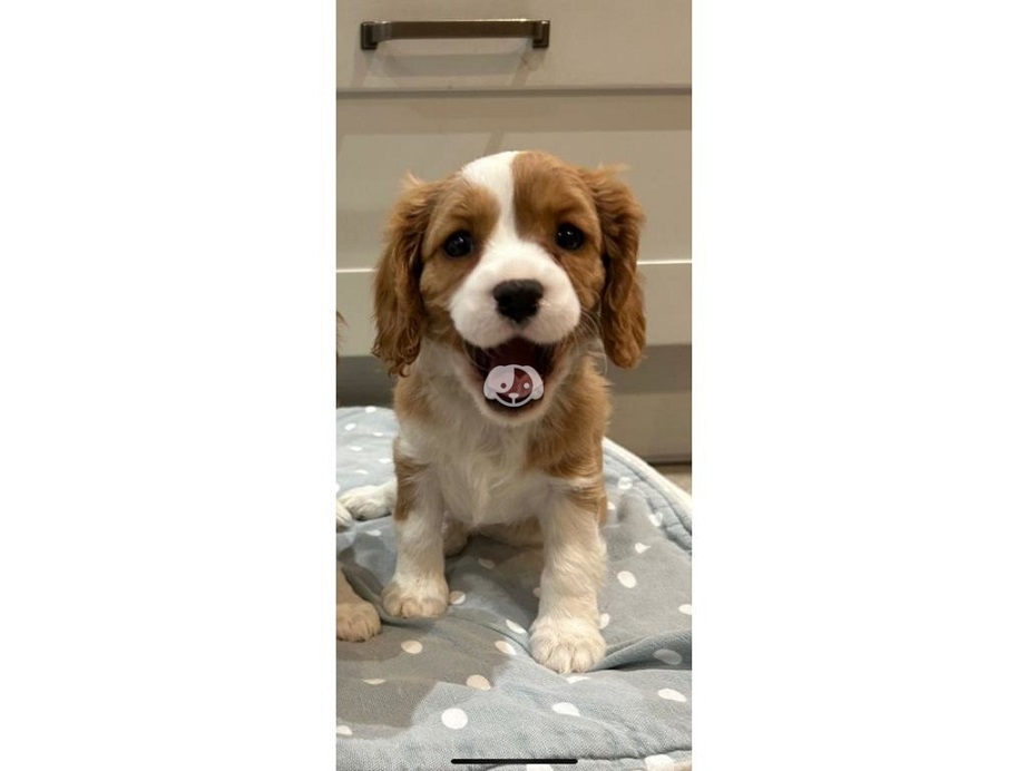 Mali our loving family pet has had a litter of 8 beautiful Blenheim KC Cavalier King Charles Spaniel and they will soon be looking for their forever home.