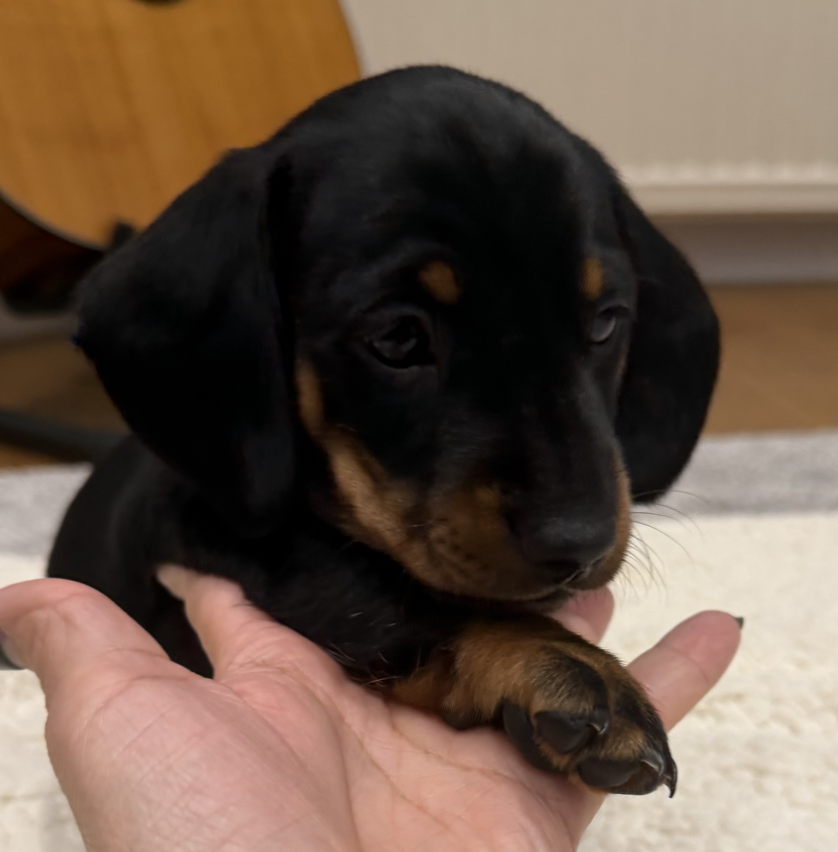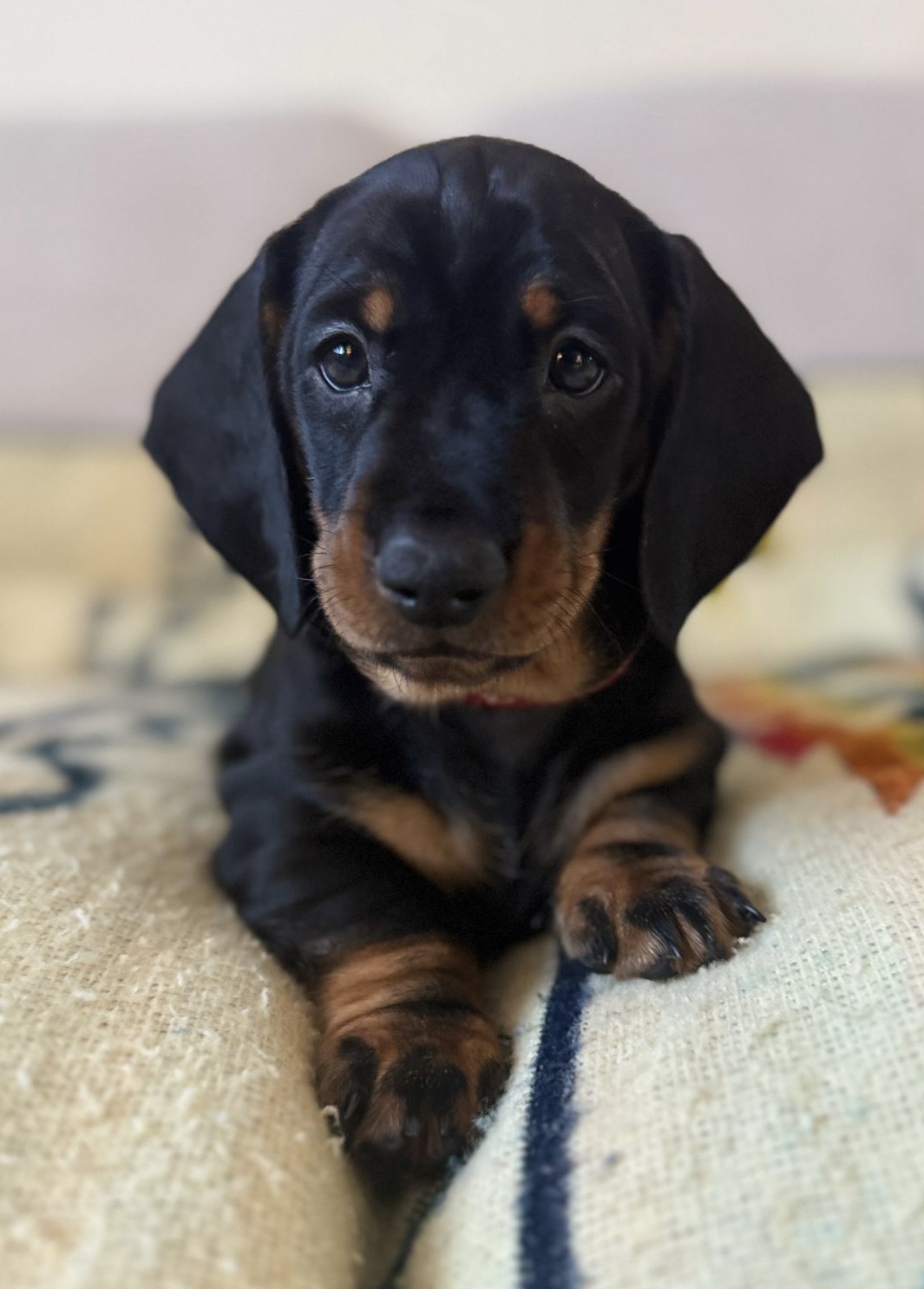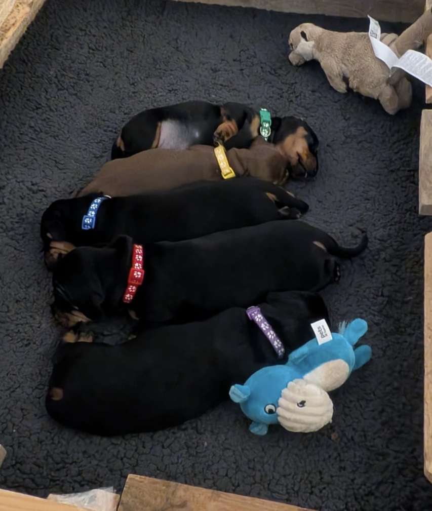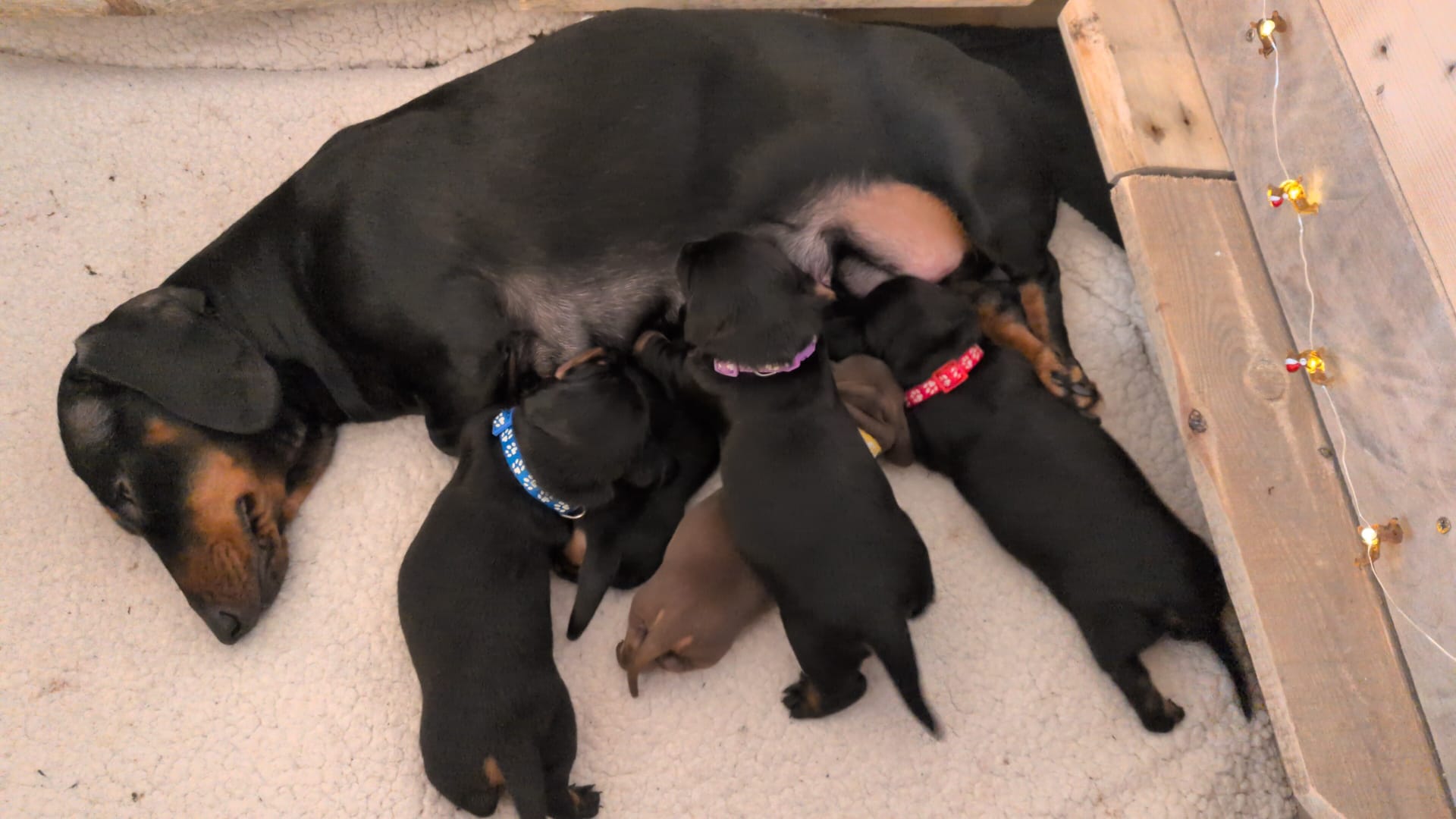Mum is a KC registered, PRA clear standard smooth-haired Dachshund with a wonderful temperament and is an excellent, calm, and attentive mother.