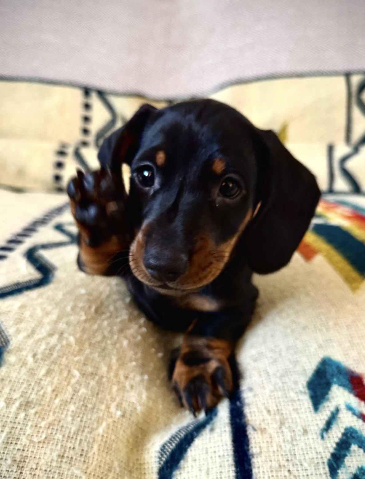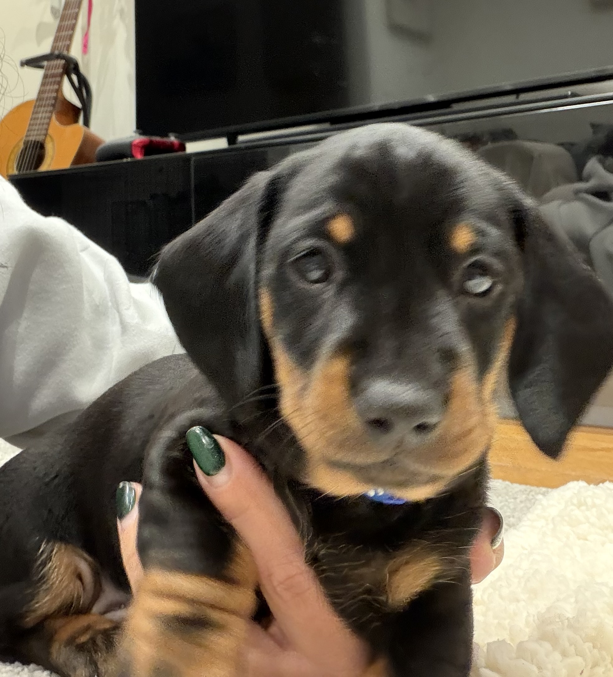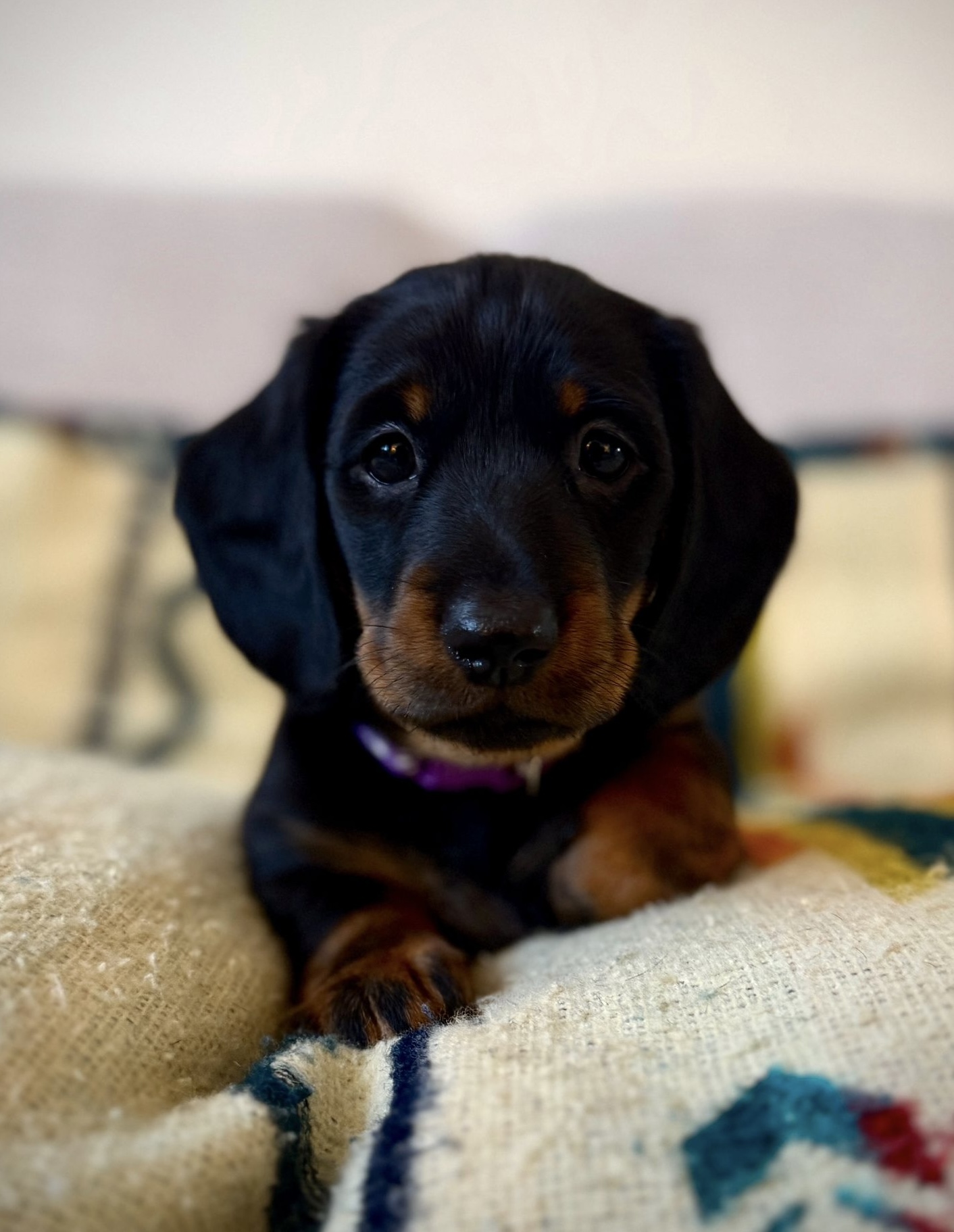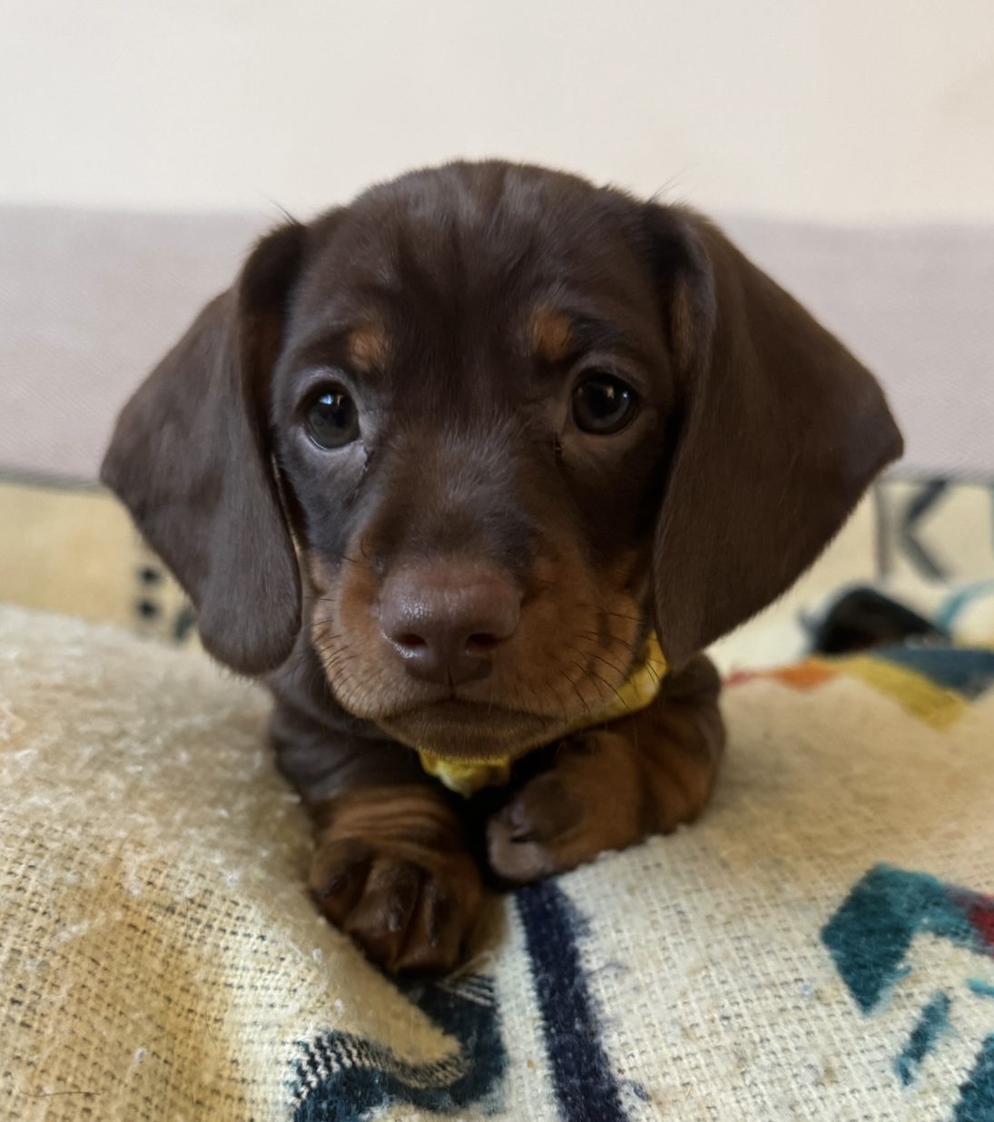Mum is a KC registered, PRA clear standard smooth-haired Dachshund with a wonderful temperament and is an excellent, calm, and attentive mother.