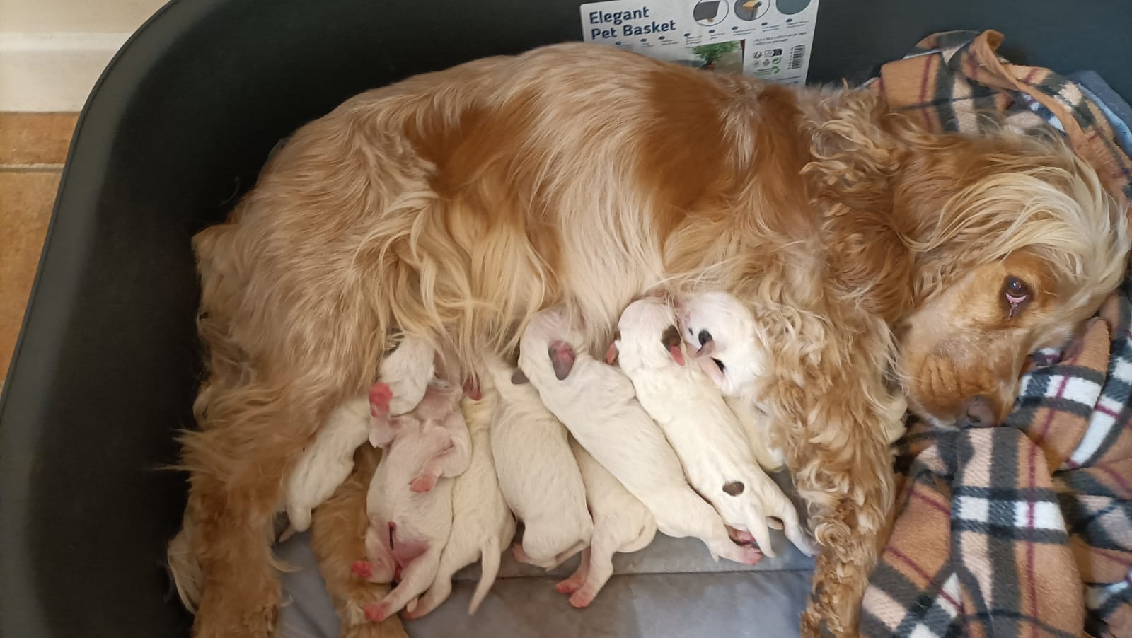 Our lovely Cocker spaniel Lilly just had her first litter of puppies, 5 gir