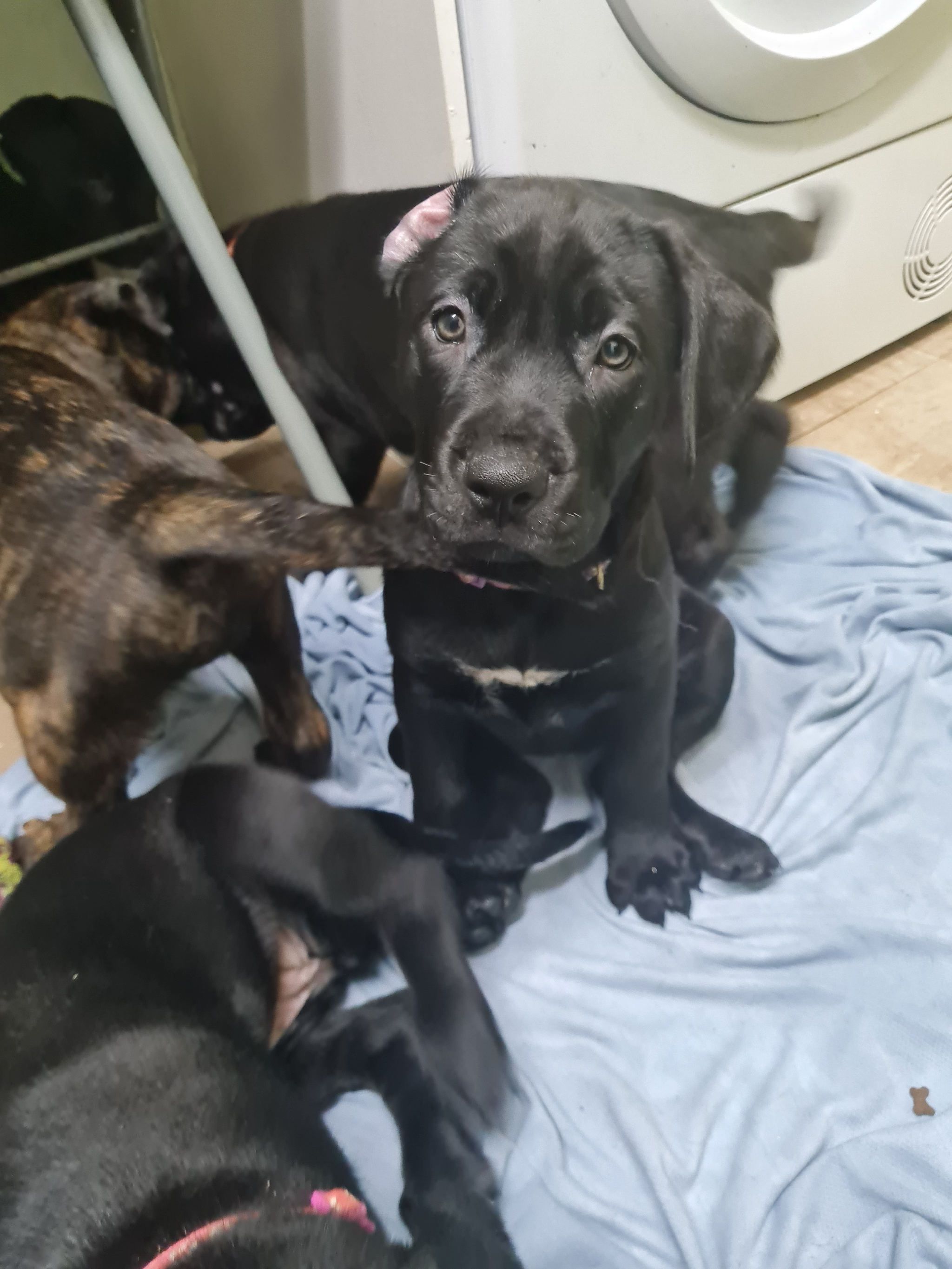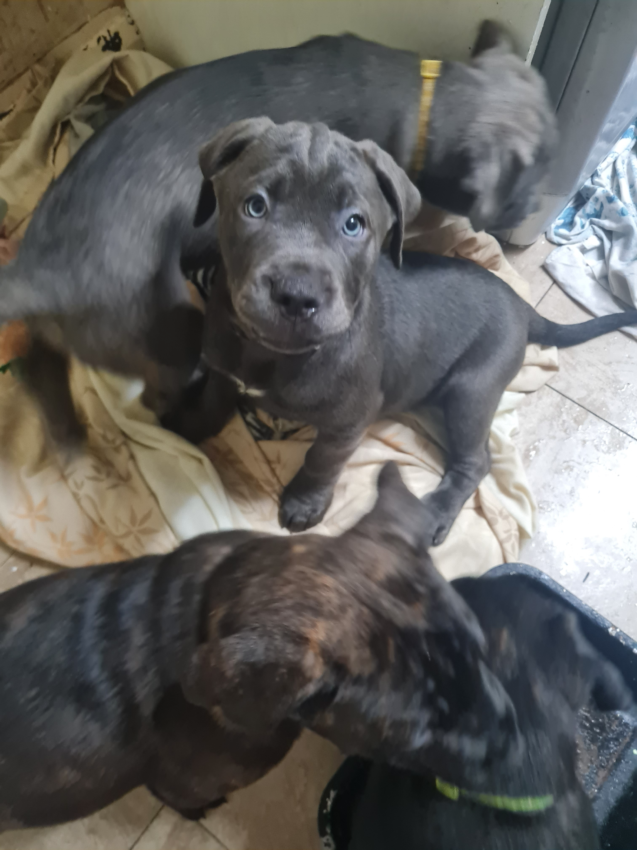 Mom is a pressa canirio and dad is a silver cane corso. Mom can be seen and