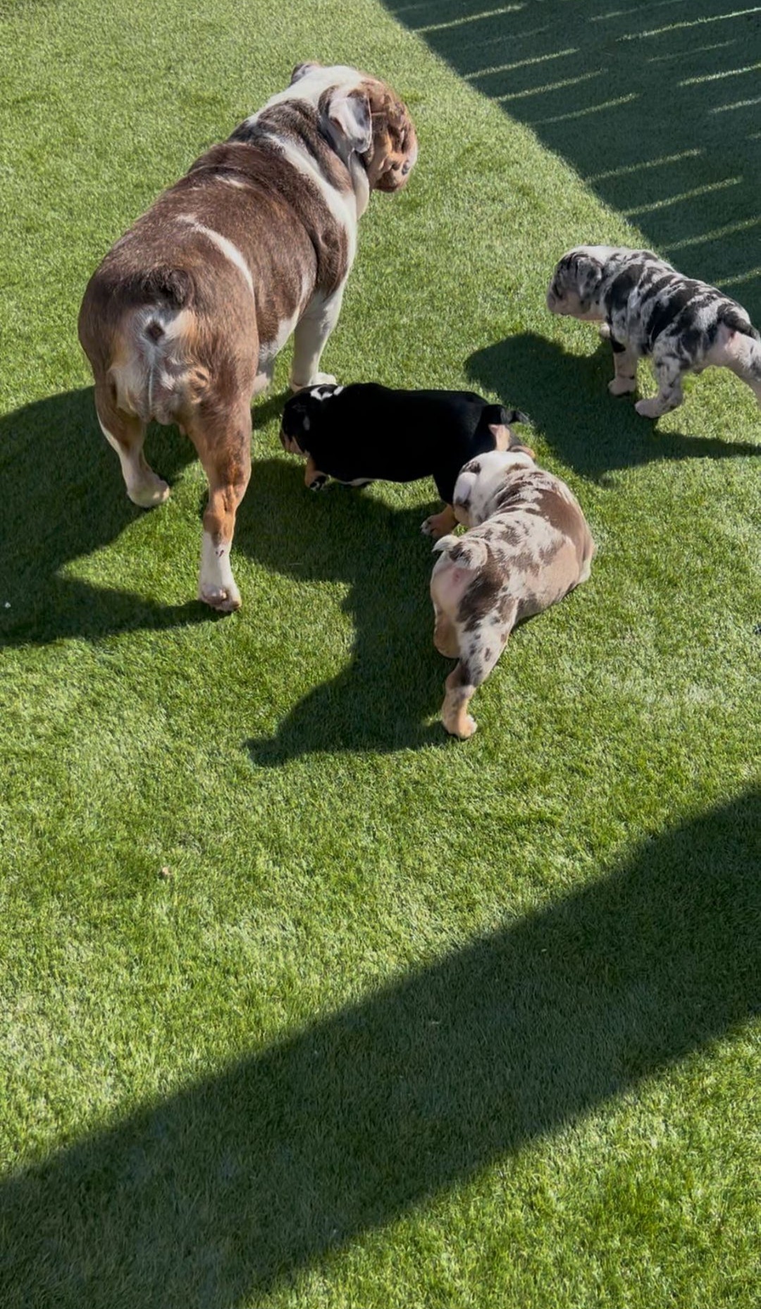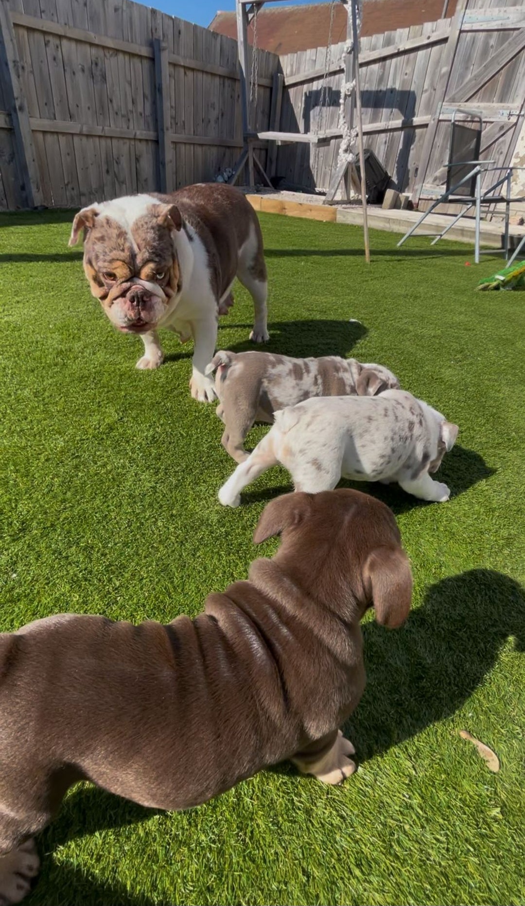 have a stunning litter of 4 adorable, chunky English bulldog puppies, ready soon for their new loving forever homes.