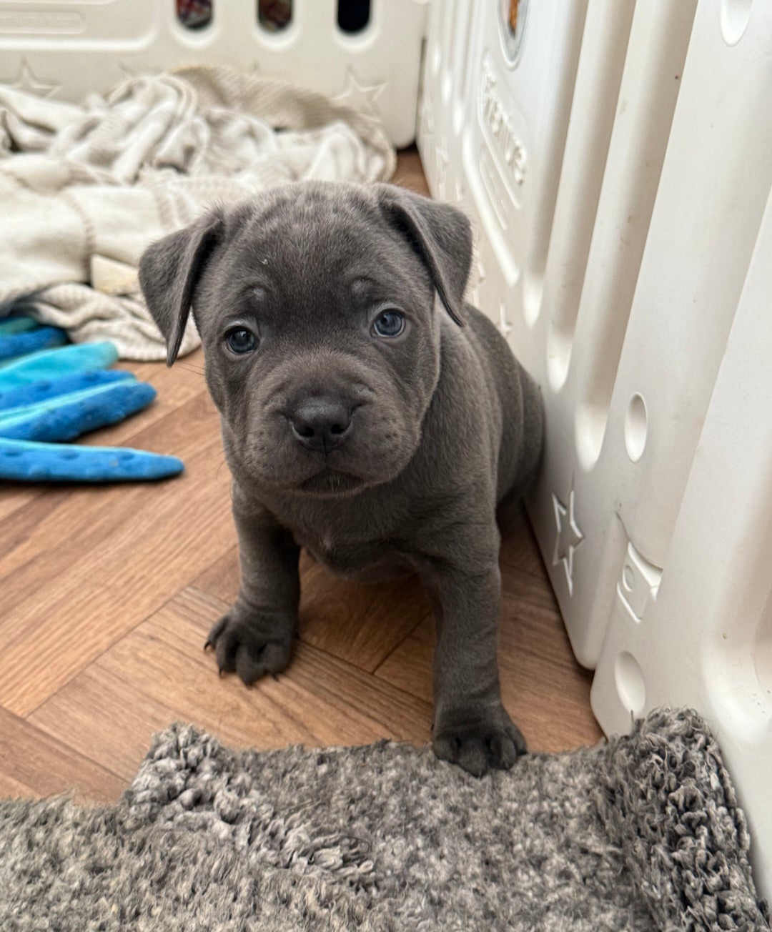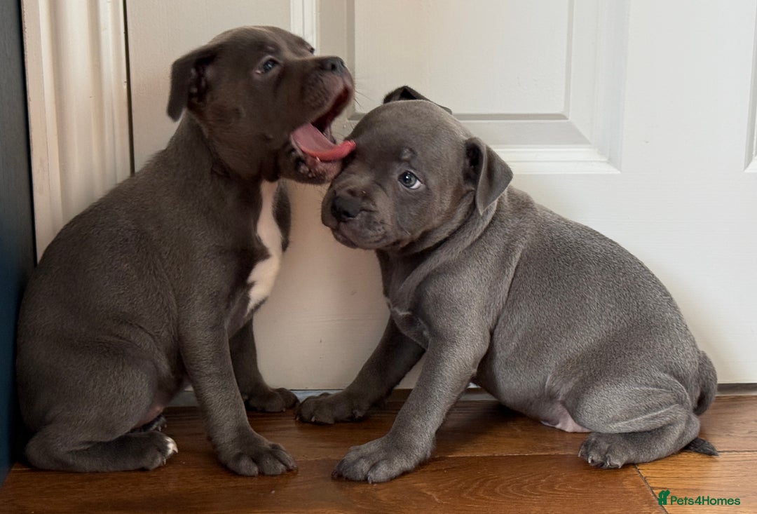 We have a beautiful litter of Blue Staffy puppies, Both mum and dad are ou