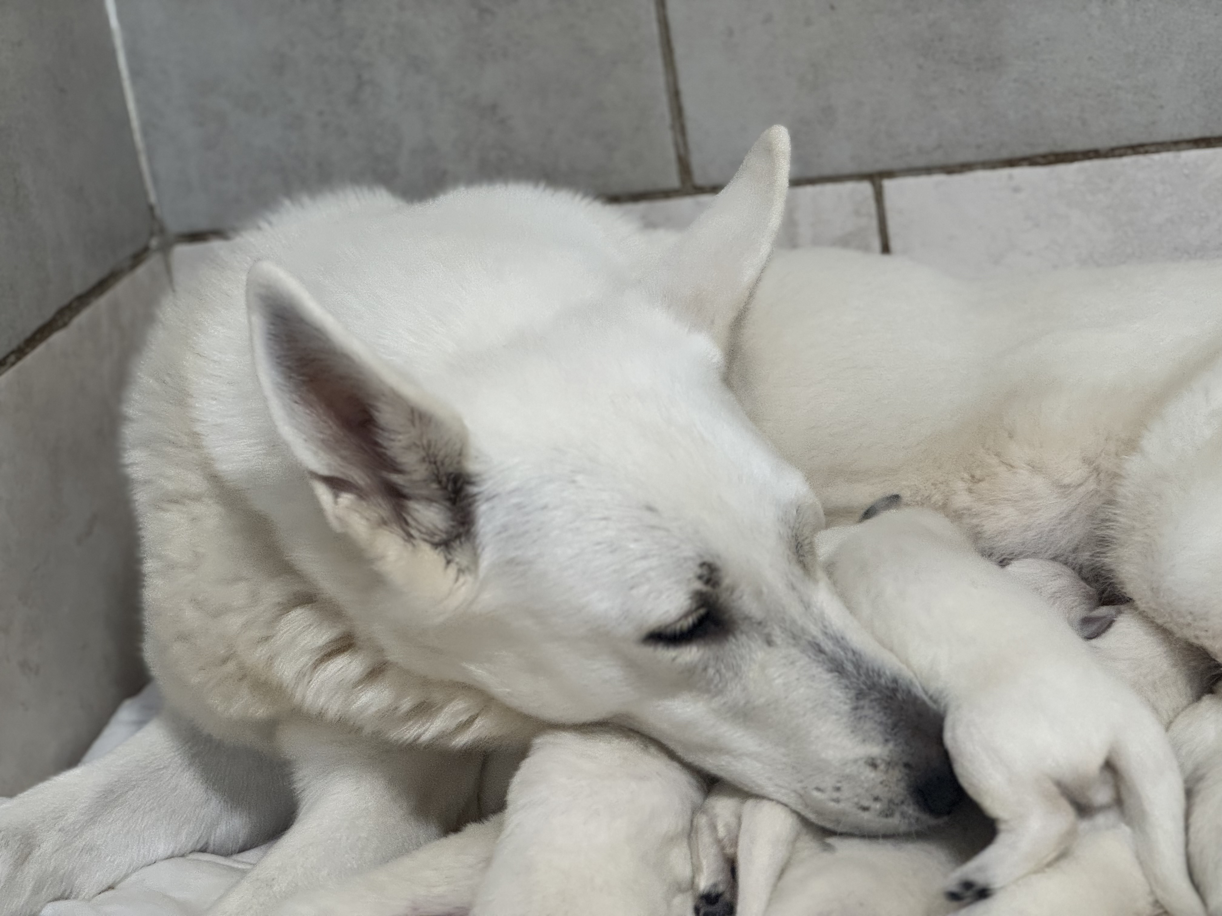 We’ve got an amazing litter of chunky White Swiss Shepherd puppies. Both parents are KC registered and have got the most laid back and gentle temperament. They are absolutely gorgeous with children and get on really well with cats. Puppies would be vaccinated and microchipped upon collection as well as flea and worm treated. We own both parents and they are absolute gems. They are health checked regularly. Dad is long coated and mum is short coated. So we have got both long coated and short coated pups. Puppies would be ready to leave on the 01/12/25. Looking for the best families))